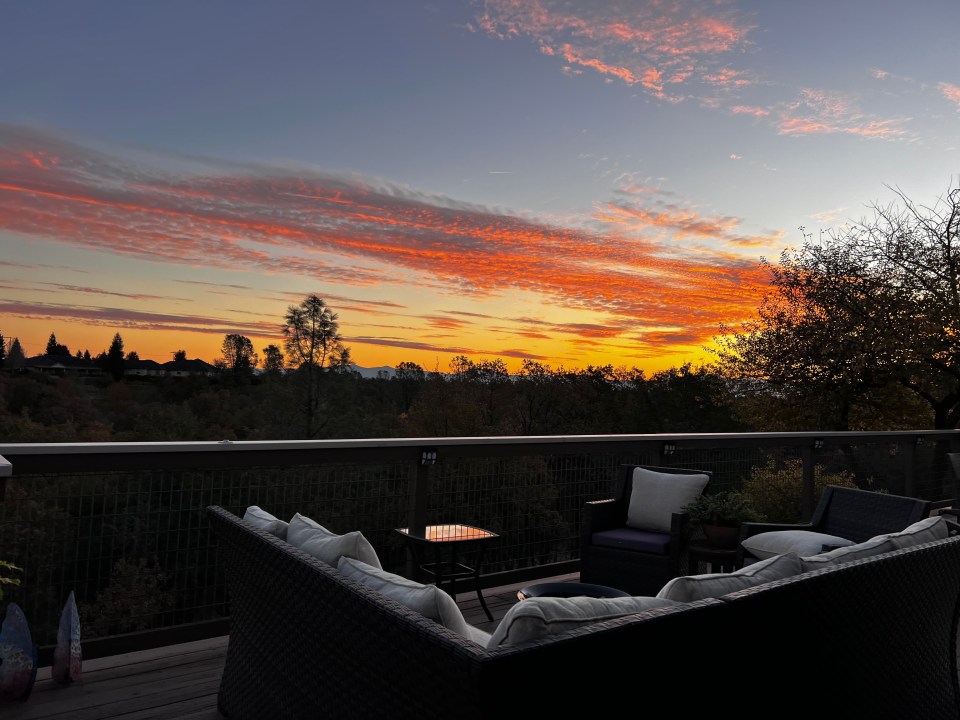 Then, one of my favorite mountains – Shasta Bali, during a very cloudy sunrise. And another from our deck. When the seasons change, we sure get a lot of beautiful sunrises.