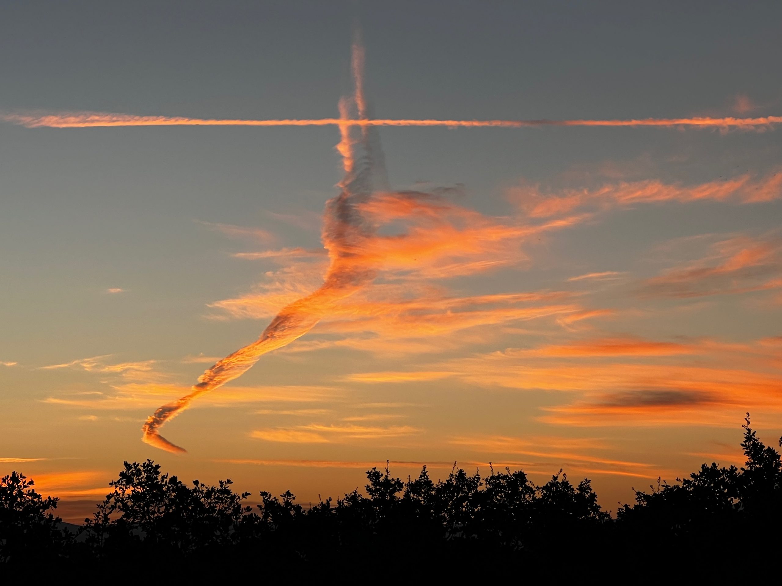 - This was a kind of cool sunrise with these interesting clouds, partly made by some planes flying through, almost like a cross or tornado cloud.