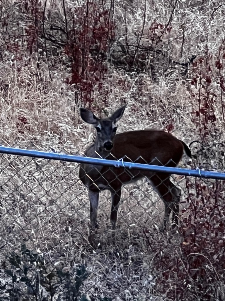 - This deer loves just coming right up to the fence. We actually had a family of 6 visit all week.
