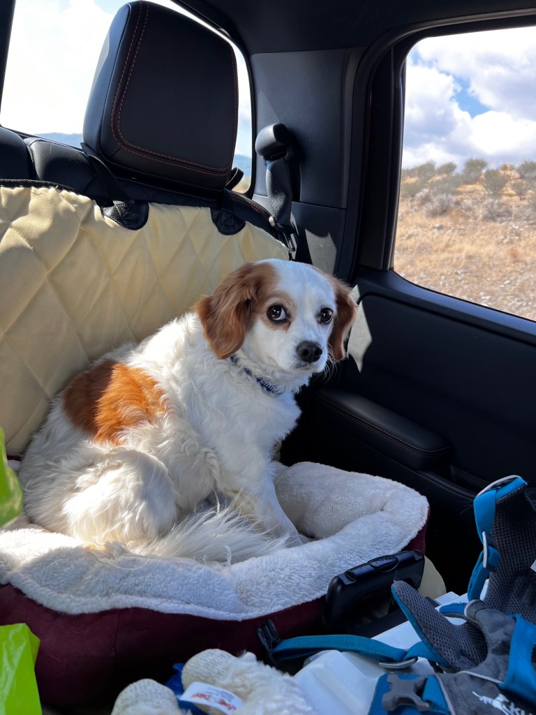 - This is one of my favorite pics of Emma in the car. Look how she’s looking at me! I had to get her off my lap to give myself a break. They weren’t kidding when they said the King Charles breed is a lap dog. Yet, I’m thinking she’s more of a Velcro dog.