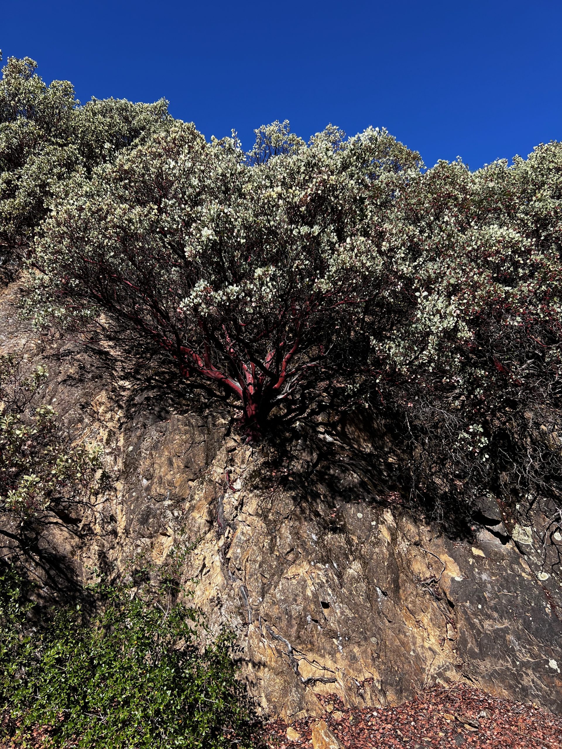 - Check out this tree growing out of the rock – it’s called a Manzanita. It has one of the toughest and strongest barks and grows anywhere, including inside a rock.