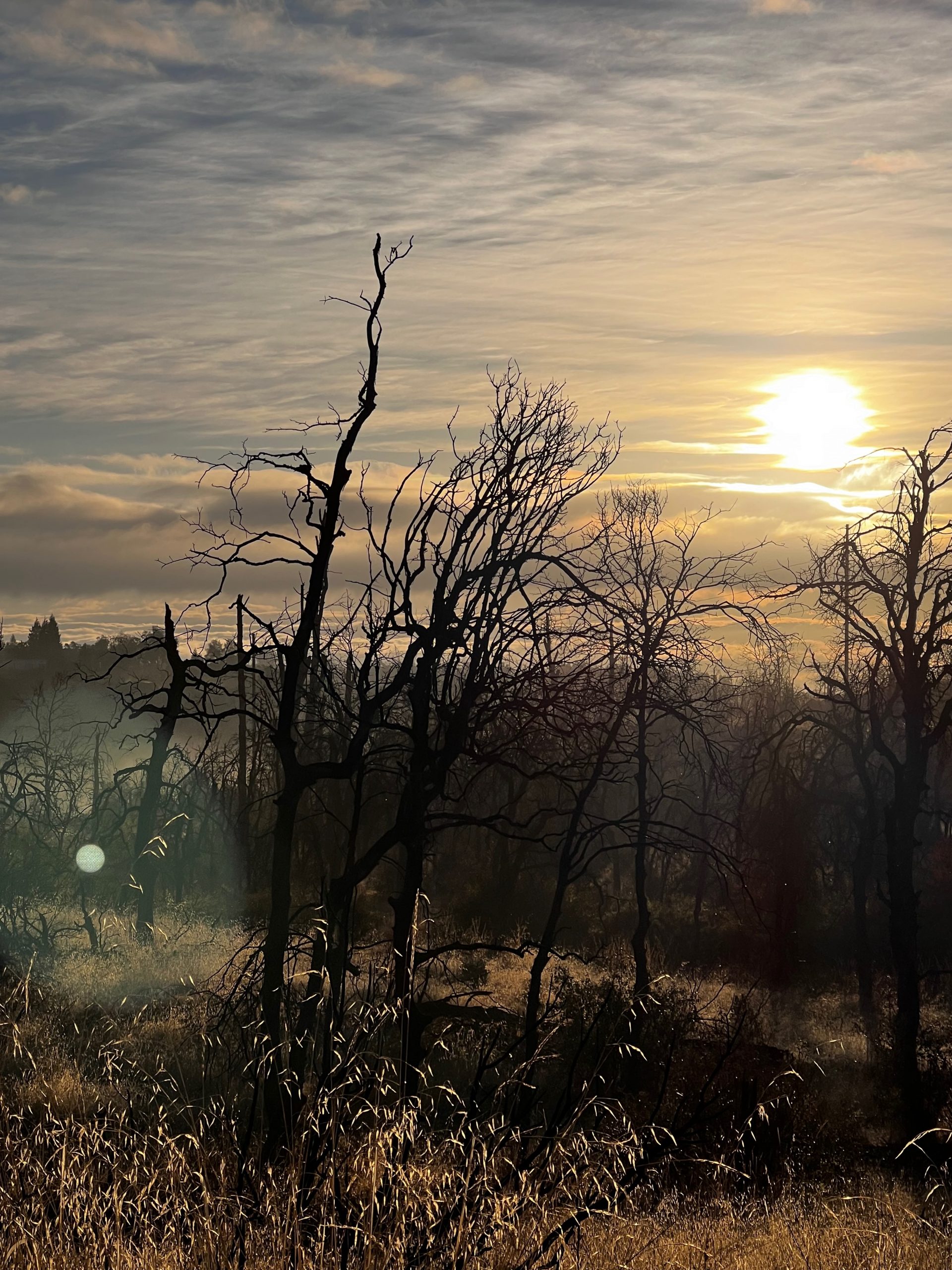 - Before the election, I went on some hikes in the woods. This is one of my favorite places because it inspires me to look through the burnt trees to see the beauty in the sunrise. And I just really love this pic.