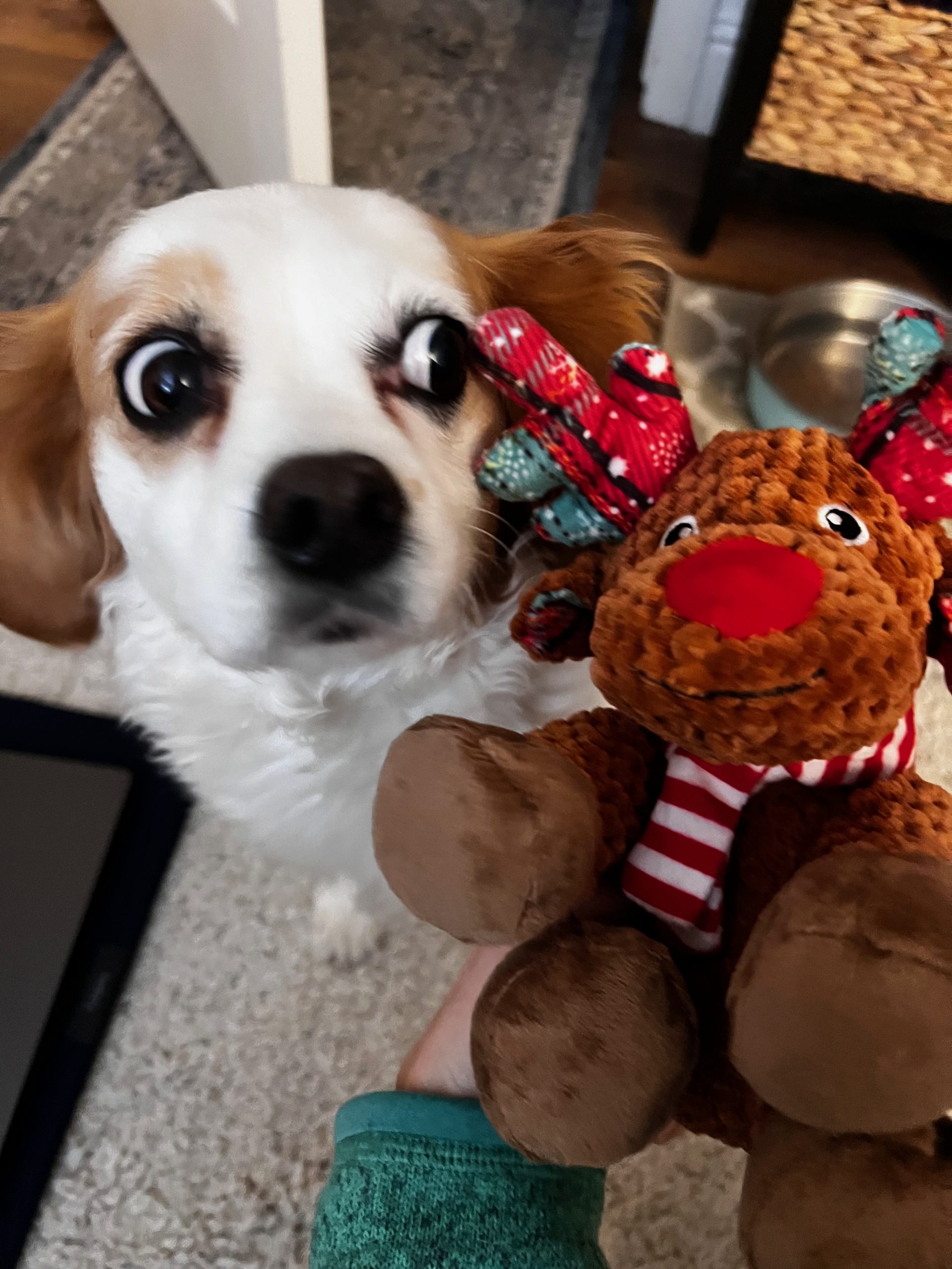 - I think this probably ended up being my favorite pre-Christmas photo of Emma. I was picked as an Amazon reviewer, and I get things sent for free in exchange for a review. So I got this dog toy, and well, I needed a picture of it, and Emma’s face kind of says it all.