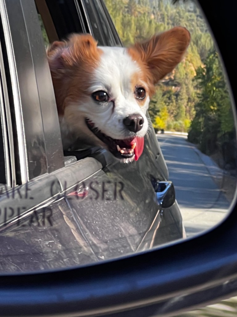 - Had to include a pic of her hanging out of the window, tongue hanging out, wind blowing her ears…